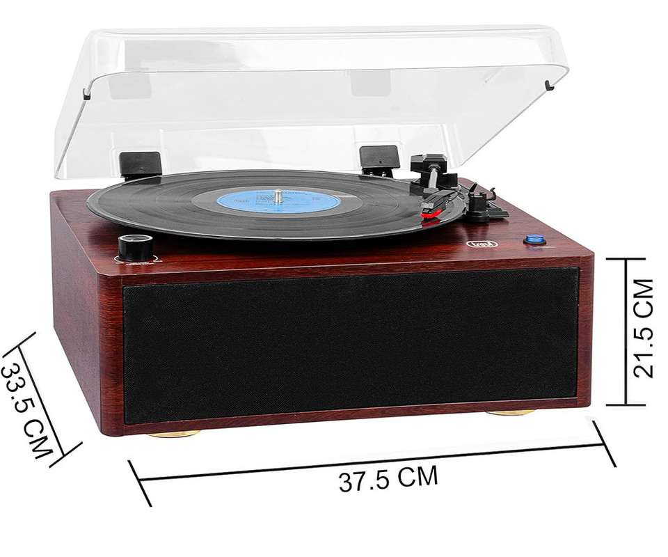 Trevi TT 1030 BT je potovanje v preteklost, skok v srce analogne glasbe. Uživajte v toplem, bogatem in podrobnem zvoku zahvaljujoč dvema vgrajenima 15 W stereo zvočnikoma.
