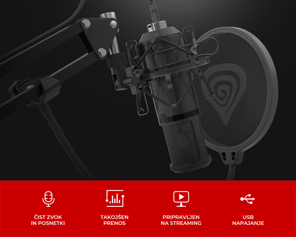 - Tip mikrofona: profesionalni, računalniški, studijski, gaming, streaming, kondenzatorski
