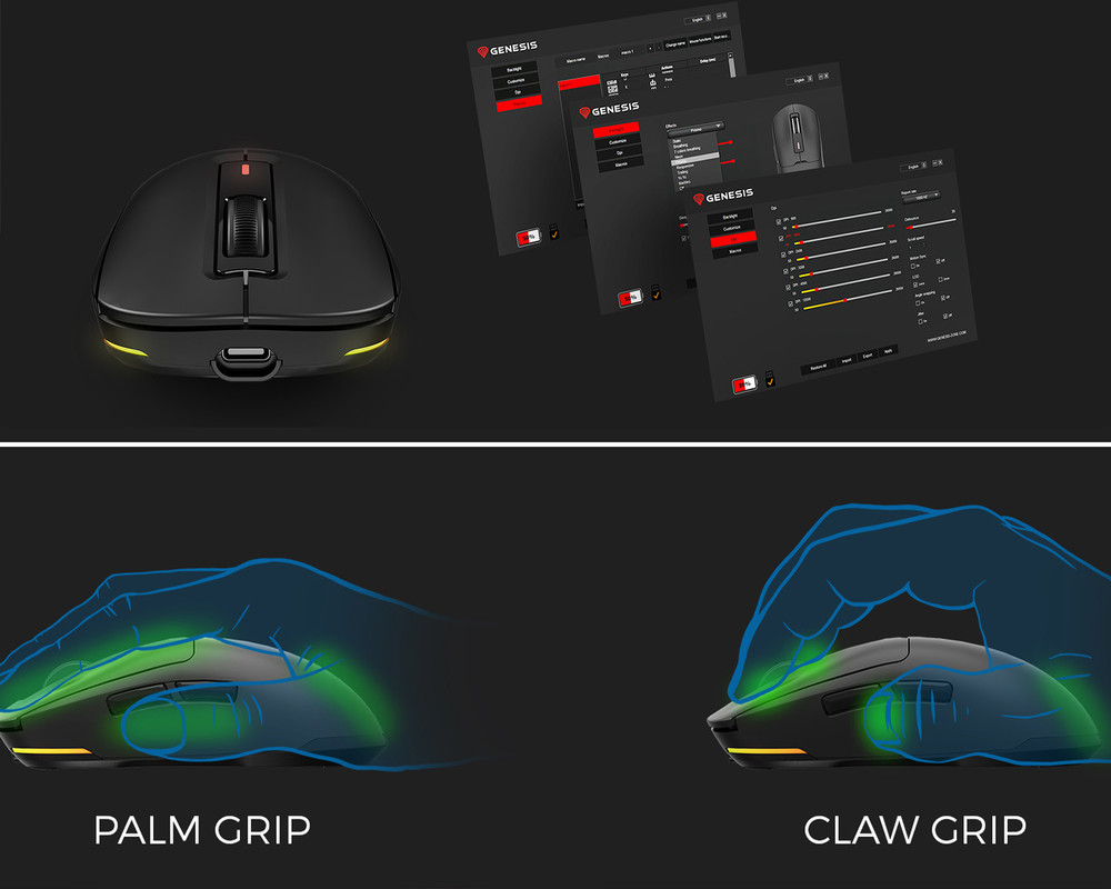 Nizka teža naprave ni edina prednost. GENESIS Zircon 660 Pro smo zasnovali predvsem tako, da je udobna. Navsezadnje tudi najbolj natančna miška ne bo dobro delovala pri igranju, če vam povzroča bolečine v roki. Z vsestransko obliko, profiliranjem in nekoliko podaljšanim zadnjim delom smo dosegli kompromis med popolnim udobjem in maksimalno zmogljivostjo.