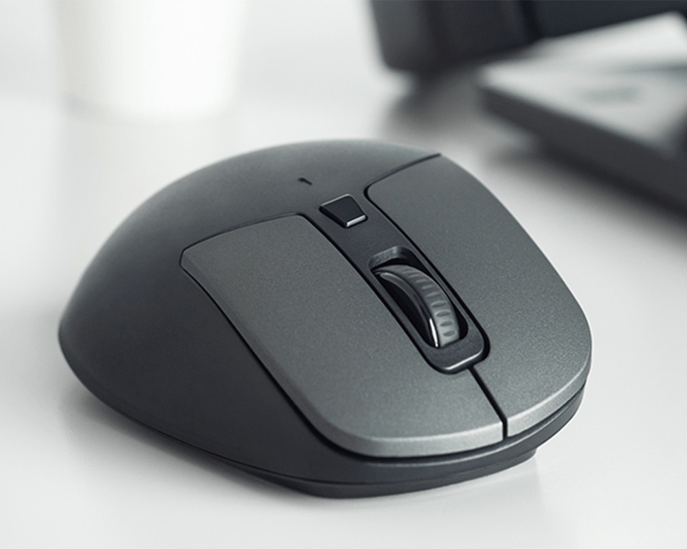 Zaobljena oblika miške se popolnoma prilagodi desni roki, kar omogoča večurno uporabo brez utrujenosti. Integriran naslon za palec poveča udobje uporabe in zagotavlja maksimalno udobje. Visokokakovostna protizdrsna površina preprečuje drsenje roke tudi pri nenadnih gibih, kar poveča učinkovitost dela.