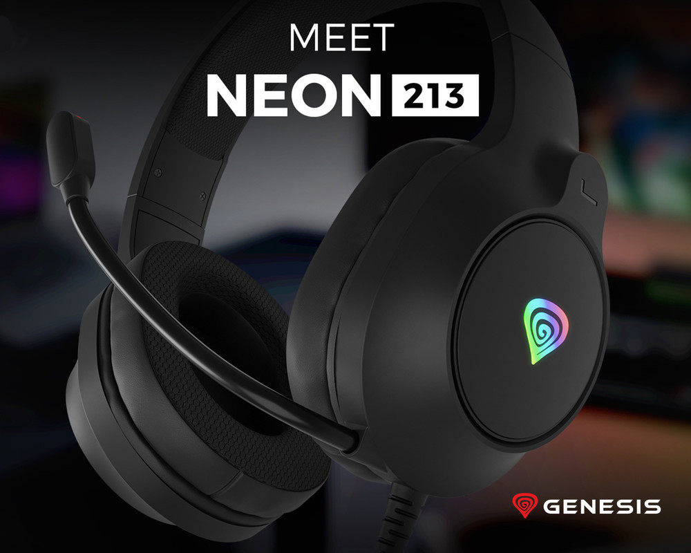 Spoznajte Genesis Neon 213 - žične naglavne slušalke, zasnovane za vse, ki imajo radi moderen dizajn, dobro kakovost zvoka in atraktivno RGB LED osvetlitev.