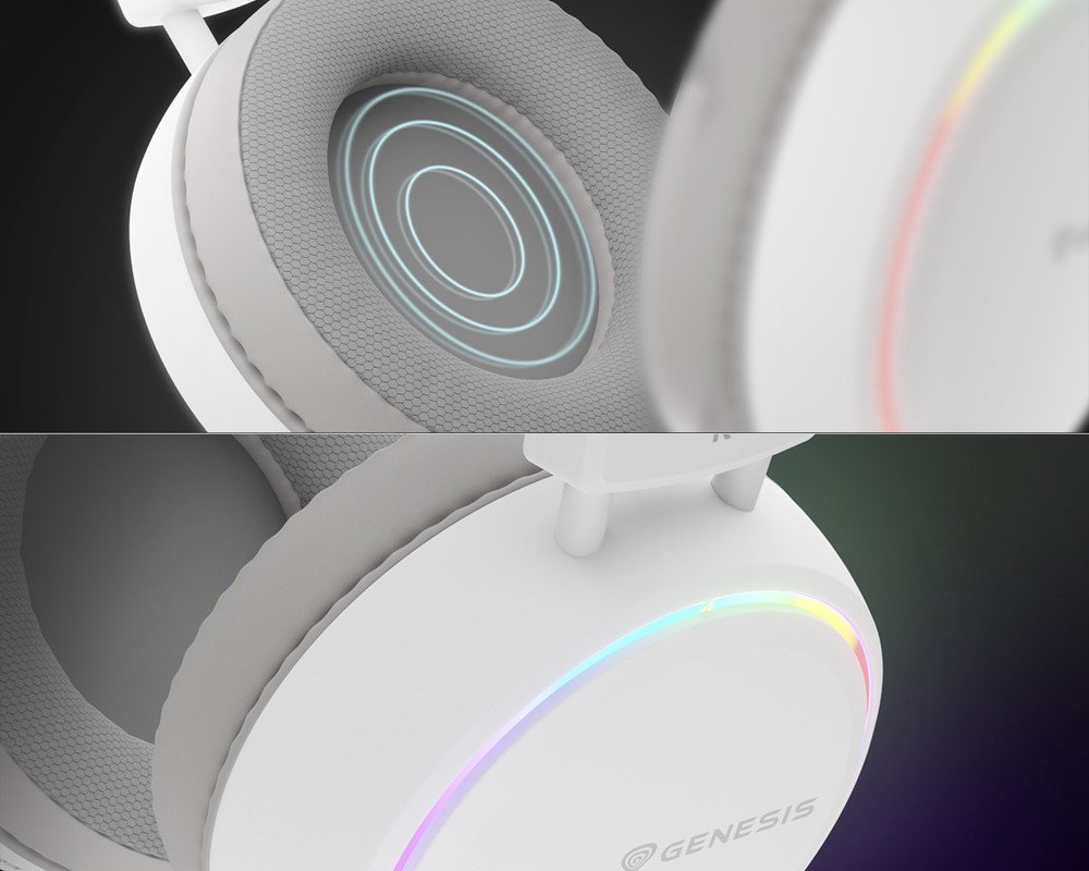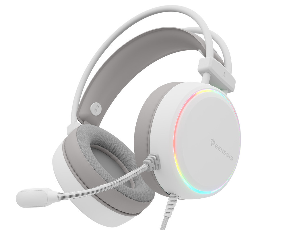 GENESIS NEON 613 G2 naglavne slušalke, gaming / pisarniške, 2.0 STEREO zvok, mikrofon, RGB LED osvetlitev, nadzor glasnosti, gumbi za upravljanje, bele (Howlite White)