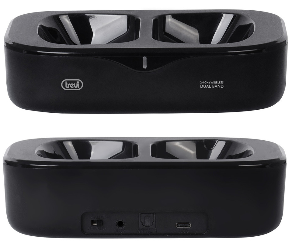Slušalke Trevi FRS 1490 RW so odlična rešitev za vse, ki želite poslušati vsebino na televiziji v miru. Delujejo prek stabilnega radijskega signala, zato se lahko prosto premikate po prostoru, ne da bi izgubili povezavo. Priložena sprejemna postaja skrbi za zanesljiv prenos in obenem služi kot polnilna baza.