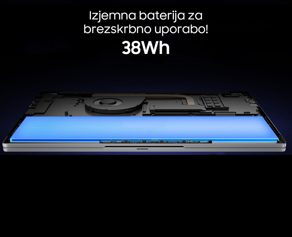 - 38Wh polnilna baterija – velika baterija poskrbi za dolgotrajno uporabo skozi celoten dan.