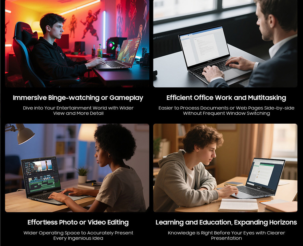 S tankim ohišjem debeline 19,5 mm in težo 1,7 kg je Acebook 6 enostaven za prenašanje. Velik zaslon in tanko ohišje vam nudita neverjetno čudovit izgled. Vsaka podrobnost je bila strokovno zasnovana za najbolj prijetno uporabniško izkušnjo.