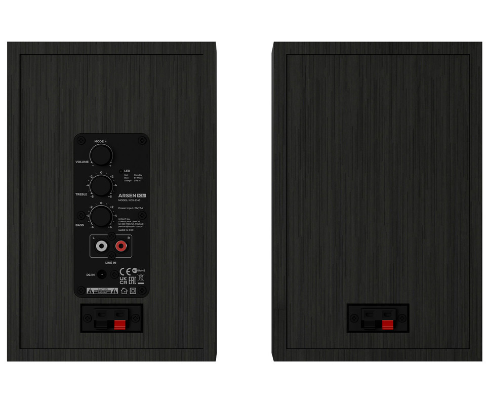 Zvočniki so na voljo v dveh barvnih različicah – klasični črni in naravno rjavi - tako da jih lahko preprosto uskladite z razporeditvijo vaše mize.
