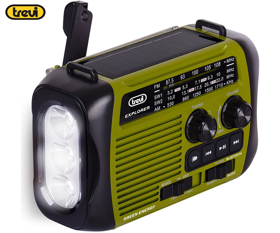 Nikoli ne ostanite brez baterije! Trevi RA 7F30 BT ponuja več možnosti polnjenja: prek ročnega alternatorja, integrirane sončne celice (največ 80 mA) za okolju prijazno energijo ali praktičnega priključka USB Type-C za hitro in sodobno polnjenje.