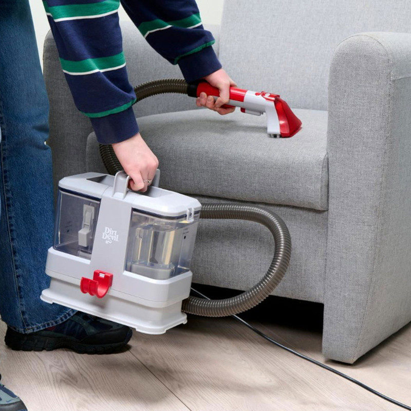 DIRT DEVIL DD1005 globinski čistilec madežev, 330W, 1.8m sesalna cev, 800ml rezervoar za vodo, ultra lahka teža, 2 nastavka, za vse vrste površin / materialov, belo-rdeč