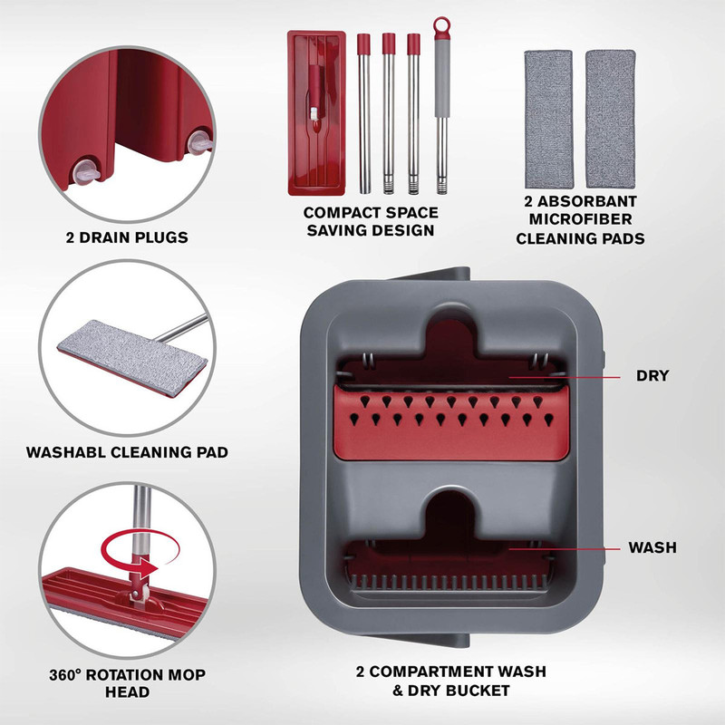 Mop odlikuje lahka konstrukcija in ergonomski ročaj, ki omogoča udobno uporabo tudi pri daljšem čiščenju. Zaradi oblike in enostavnega upravljanja je primeren za vse uporabnike, saj zmanjšuje obremenitev rok in hrbta ter omogoča boljši nadzor pri čiščenju.