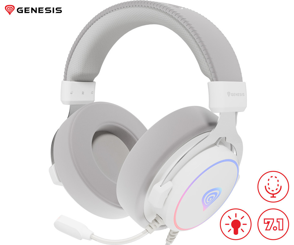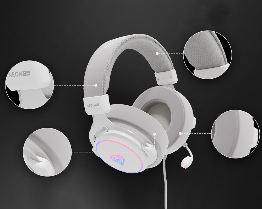 Spoznajte Genesis Neon 764 - žične naglavne slušalke, zasnovane za vse, ki imajo radi moderen dizajn, dobro kakovost zvoka in atraktivno RGB LED osvetlitev.