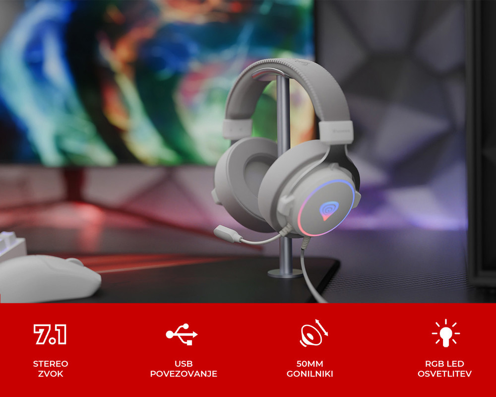 - 7.1 VIRTUALNI STEREO PROSTORSKI zvok - poslušajte podrobnosti, ki prihajajo do vas od koder koli in bodite vedno korak pred svojim nasprotnikom.