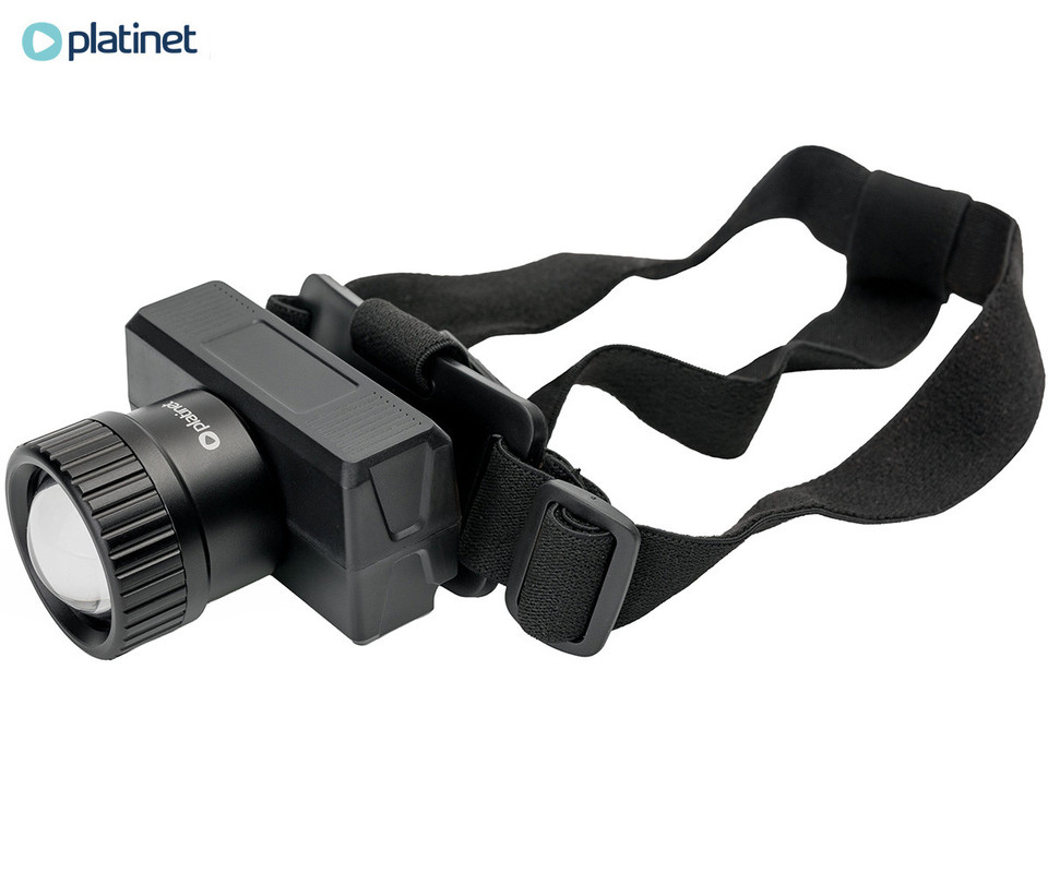 PLATINET PHLP51 naglavna LED svetilka, 10W moč, 1000 lumnov, 3000mAh polnilna baterija, nastavljiva svetlost, ZOOM funkcija, IPX4 vodoodpornost, upravljanje z gumbi / kretnjami, +naglavni trak, črna