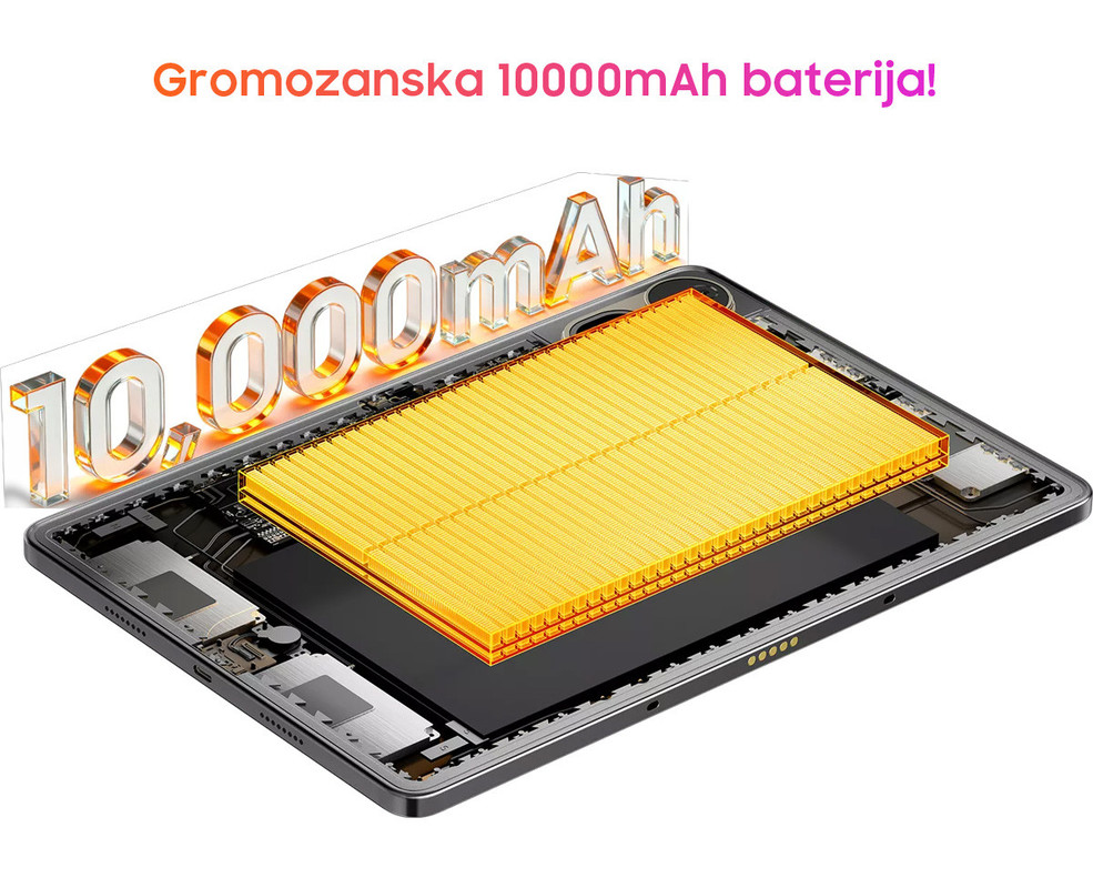 MEGA 12 vam s pomočjo 10.000 mAh polnilne baterije omogoča, da jo uporabljate skozi celoten dan, opravljate video klice, poslušate glasbo, igrate igrice ali brskate po spletu. Tablica podpira tudi 55W QC hitro polnjenje!