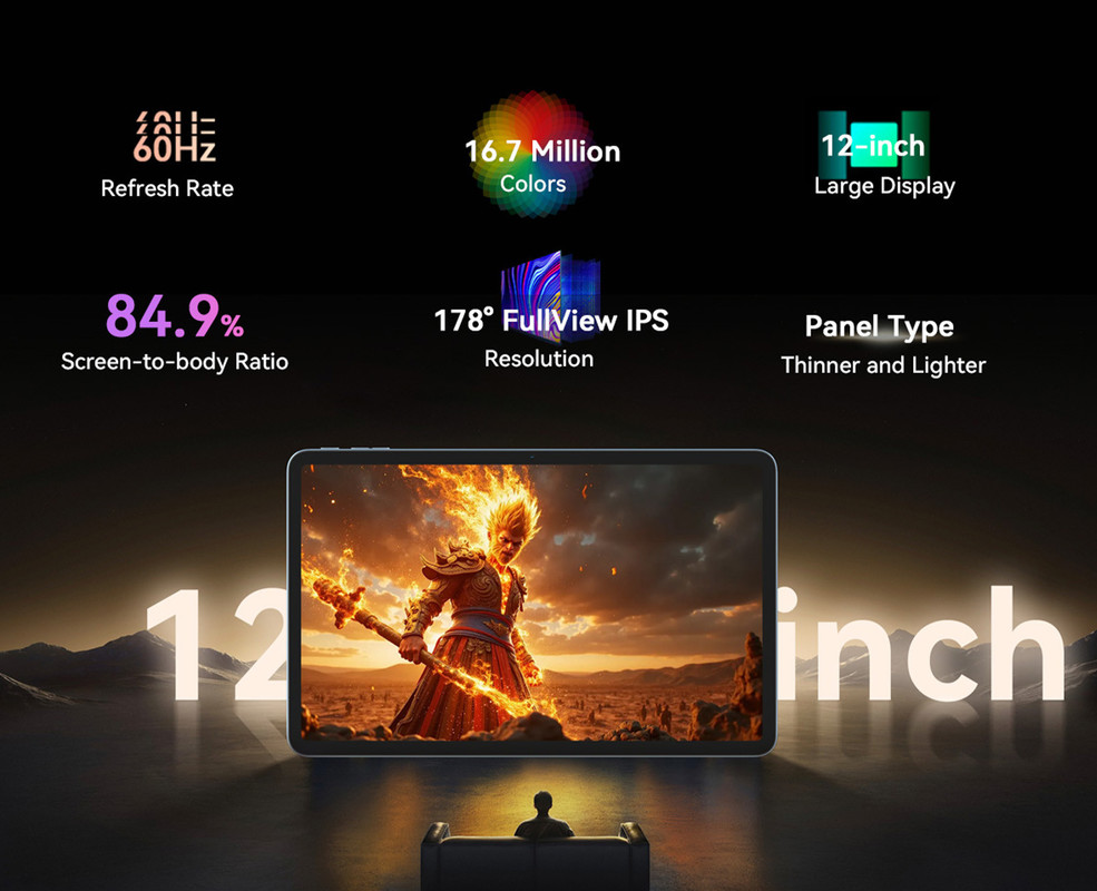Sprostite se pred velikim 12“ (30,48 cm) IPS barvnim zaslonom z ločljivostjo K (2000x1200 px), ki vas bo navdušil s pristnimi barvami, izjemno barvno reprodukcijo in živimi podrobnostmi. Oglejte si posnetke, slike in dokumente v neverjetni kakovosti!