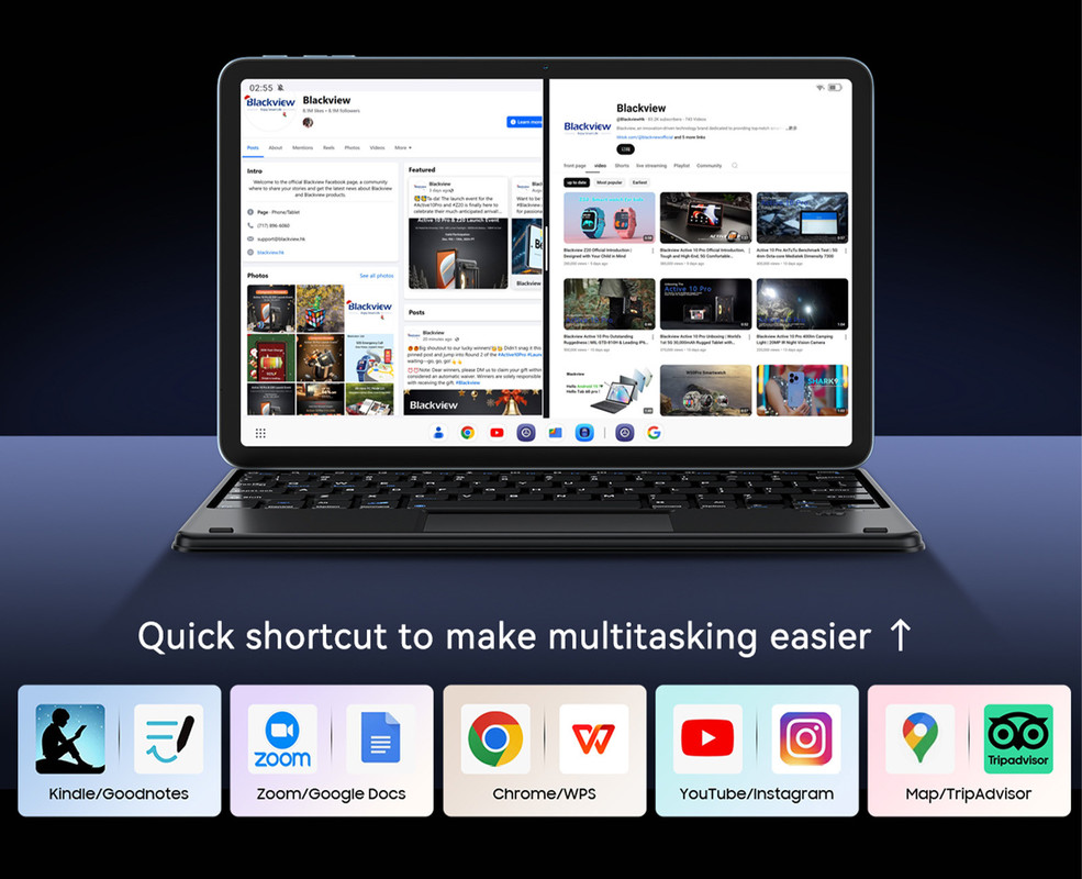 Odločite se za maksimalno produktivnost, neskončno zabavo in neverjetno zmogljivost, ter izberite najnovejši tablični računalnik Blackview MEGA 2! Tablični računalnik z operacijskim sistemom Android in priloženimi dodatki vas bo navdušil s svojim 12“ (30,48 cm) IPS zaslonom z ločljivostjo 2K (2000x1200 px). MEGA 2 se lahko pohvali tudi s pametnim AI sistemom, hitrim delovanjem in zmogljivo strojno opremo: