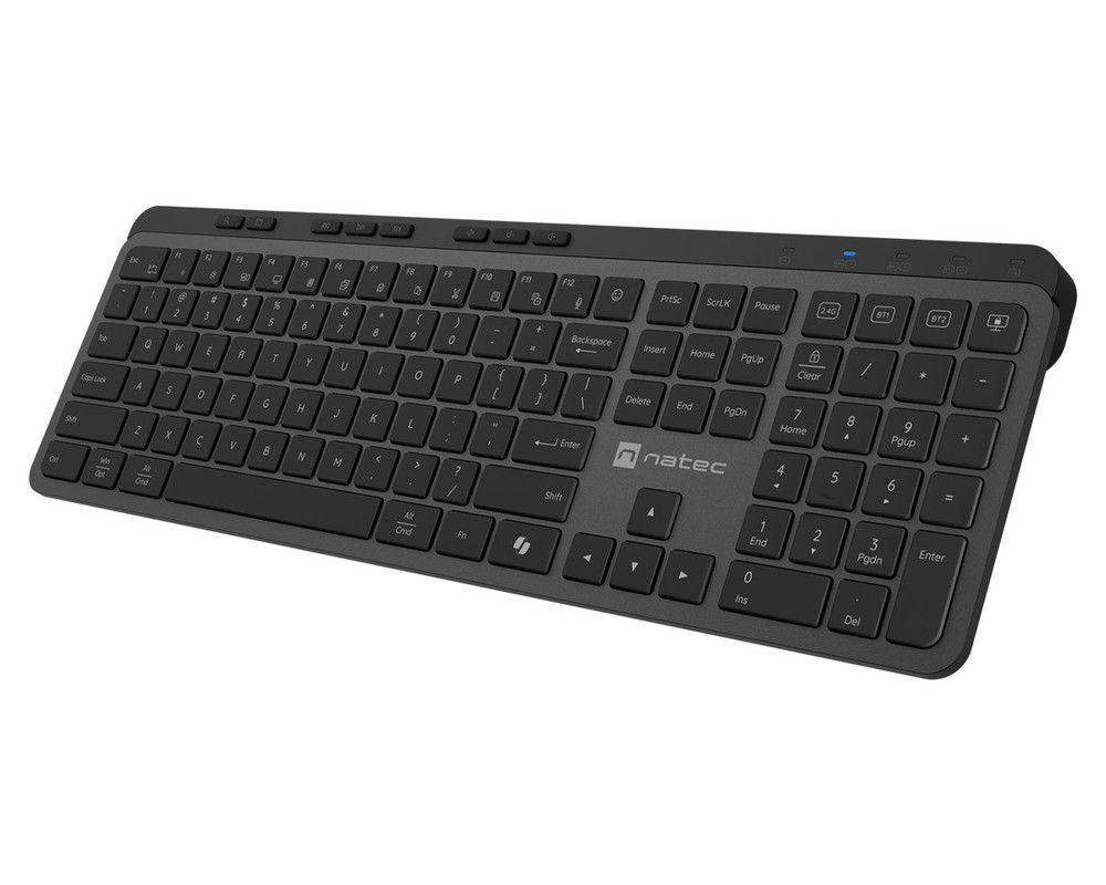 Natec MEDUSA je tipkovnica, zasnovana z elegantno zasnovo, namenjena za večopravilnost in ponuja brezžično povezljivost ter svobodo združevanja naprav, kar jo naredi popolno tako za pisarno, kot tudi dom.