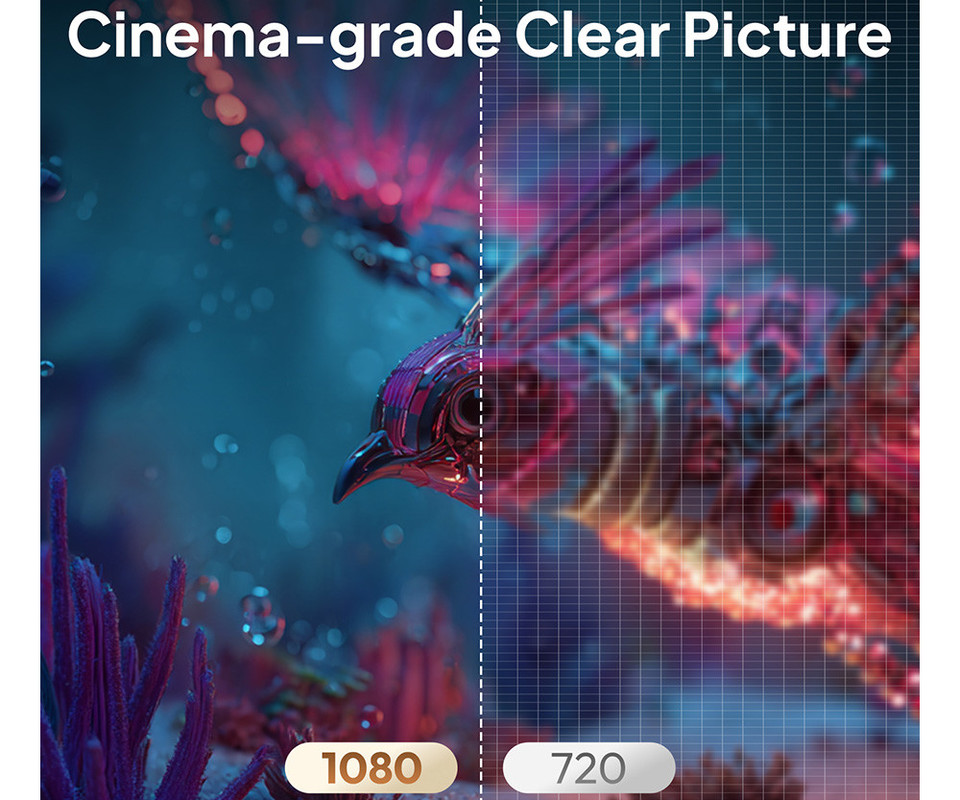 - Izjemna ločljivost! - Uživajte v realističnem filmskem doživetju, saj projektor omogoča ogled vsebin v odlični ločljivosti z izjemnimi barvami, poleg tega pa zagotavlja ostro sliko in odličen barvni kontrast.