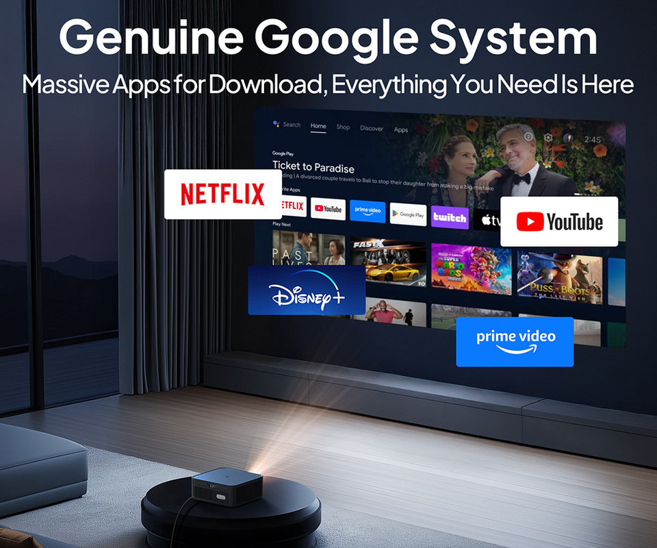 - Google TV OS - Najnovejši pametni operacijski sistem z odlično zmogljivostjo in prijetno uporabniško izkušnjo vam bo pomagal pri enostavni uporabi in nastavljanju funkcij projektorja.
