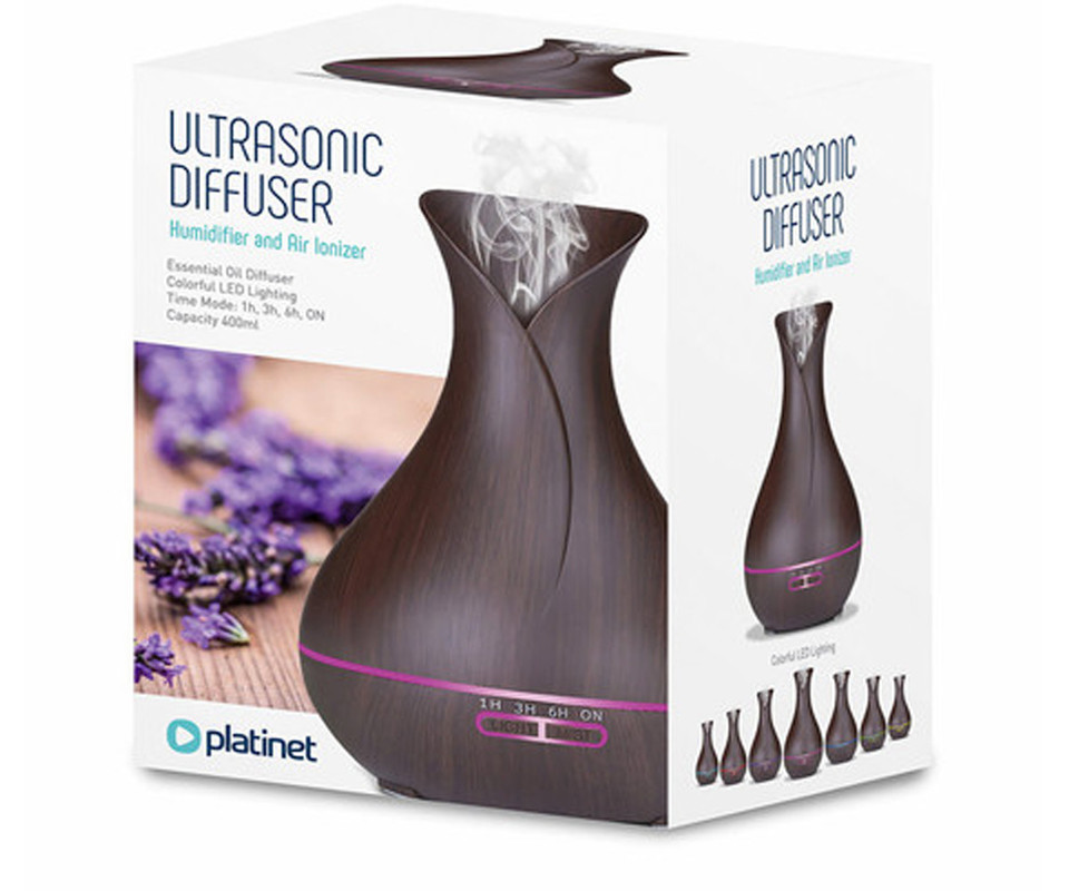 Platinet PADYM010 je napreden osvežilec in vlažilec zraka ter ionizator, ki je narejen v modernem stilu - ohišje je narejeno v imitaciji lesa! Vlažilec ima nastavljiv časovnik in rezervoar za vodo z velikostjo kar 400ml, kar mu zagotavlja večurno neprekinjeno delovanje. Pri svojem delovanju proizvaja čudovito in pomirjujočo meglico, če pa v rezervoar za vodo dodate tudi nekaj kapljic eteričnega olja, pa bo prostor napolnil tudi s prijetnimi vonjavami.