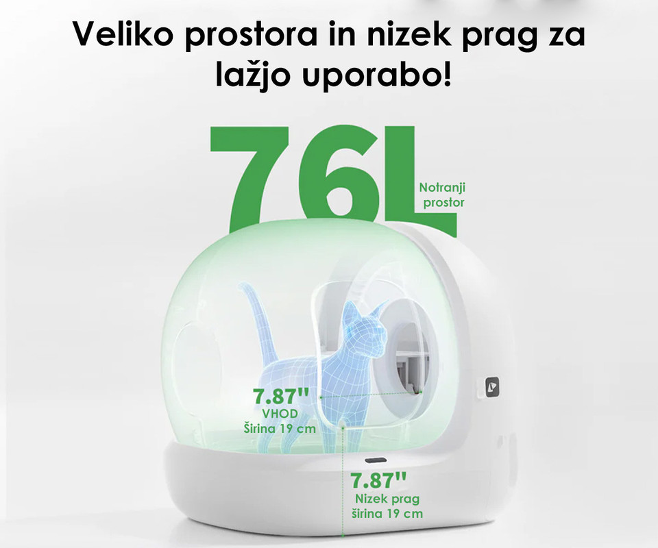 - Poskrbljeno za varnost - 11 varnostnih senzorjev ustavi delovanje, če je mačka preblizu naprave ali znotraj nje