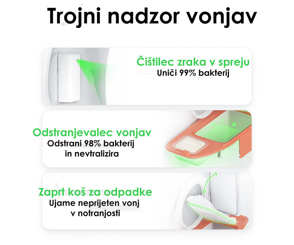 - Trojni sistem za odstranjevanje vonjav - zatesnjen predal, deodorant in pametni sprej