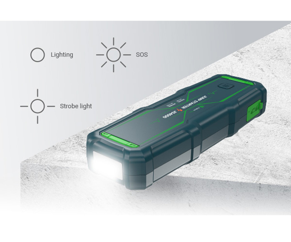 Naprava je opremljena s tremi načini LED osvetlitve (stalna luč / utripanje / SOS), ki jih je mogoče enostavno preklapljati z gumbom za vklop. Svetla osvetlitev vam pomaga zagnati avto ponoči, medtem ko se načina stroboskopa in SOS lahko uporabita kot signala za nujne primere v kritičnih situacijah.