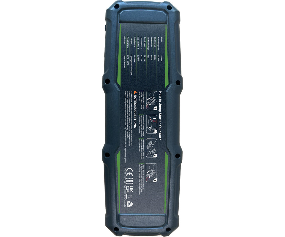 NAVITEL JS4000 zažene vaš avto v le nekaj sekundah, tudi z zelo nizko napolnjenostjo akumulatorja. Ta naprava zagotavlja do 4000 A vršnega toka, kar učinkovito zažene bencinske motorje do 10 litrov in dizelske motorje do 8 litrov. Je vsestranski in zanesljiv ter združljiv z 12V vozili, vključno z motorji, pickupi, avtodomi, tovornjaki, štirikolesniki, motornimi sanmi in mnogimi drugimi.