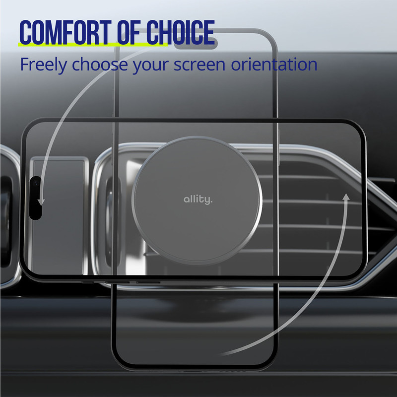 ALLITY inovativni avtomobilski nosilec z vgrajenim brezžičnim polnilnikom je združljiv s tehnologijo MagSafe in Pixel Snap. Ta kompaktna naprava je kombinacija funkcionalnosti, varnosti in sodobnega dizajna.