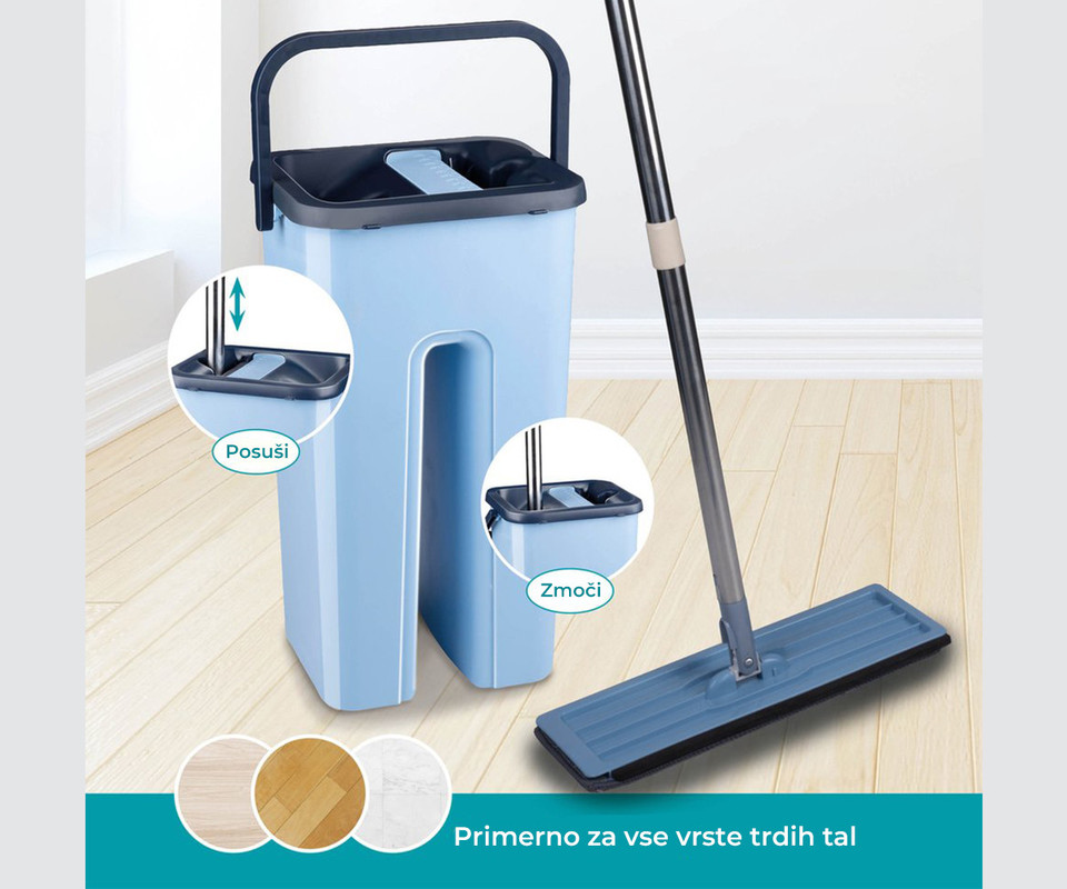 • Higieničnost - komplet nudi bolj higienično alternativo ročnemu ožemanju krpe.