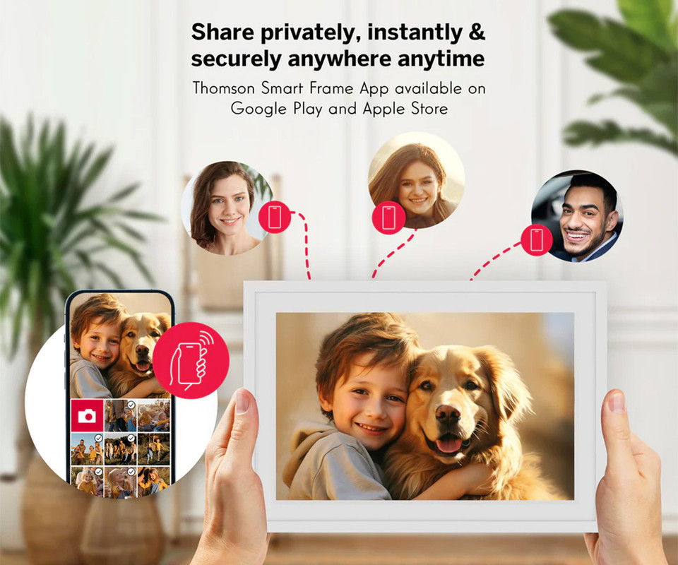 THOMSON F10 Smart Photo Frame je pameten digitalni okvir, ki omogoča preprost in eleganten prikaz vaših fotografij in videoposnetkov. Z modernim dizajnom in naprednimi funkcijami se odlično poda v vsak prostor – dnevno sobo, spalnico ali pisarno. Namenjen je vsem, ki želijo svoje spomine ohraniti žive in jih deliti z bližnjimi na sodoben način.