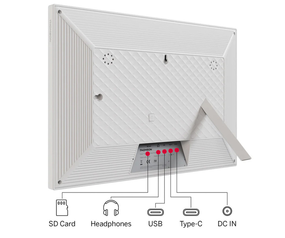 THOMSON F15 pametni digitalni foto okvir, 39.6cm (15.6"), Full HD IPS zaslon na dotik, Smart Frame aplikacija, WiFi, Android + iOS, 32GB ROM, razširljiv spomin, zvočniki, USB-A, USB-C, bel