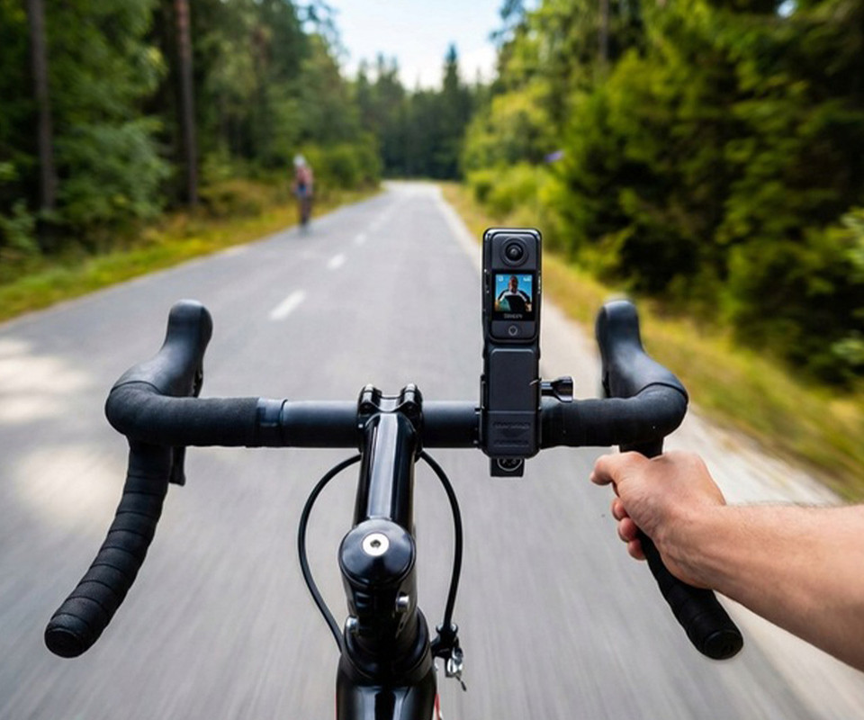 • Hitra namestitev/odstranitev – Preprosta namestitev omogoča hitro premikanje kamere med različnimi nastavitvami (npr. stojalo ↔ čelada ↔ rolka).