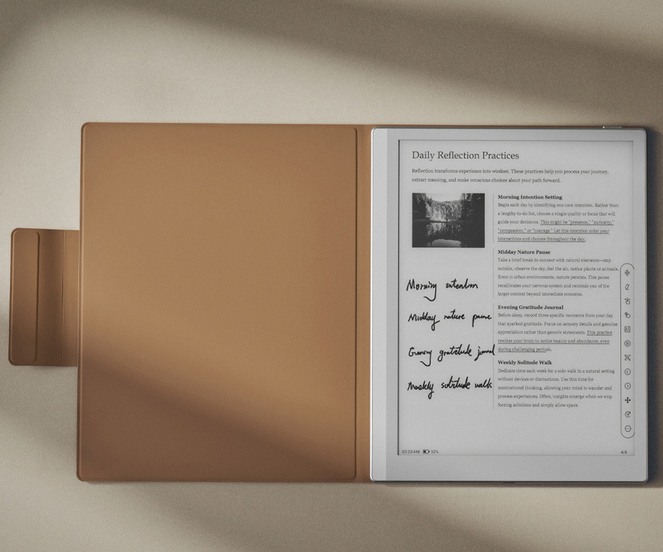 To omogoča udobno branje, pisanje ali pregledovanje vsebin pod optimalnim kotom, ne glede na to, ali ste za mizo ali na poti. Funkcionalnost stojala dodatno izboljša uporabniško izkušnjo in poveča vsestranskost naprave.