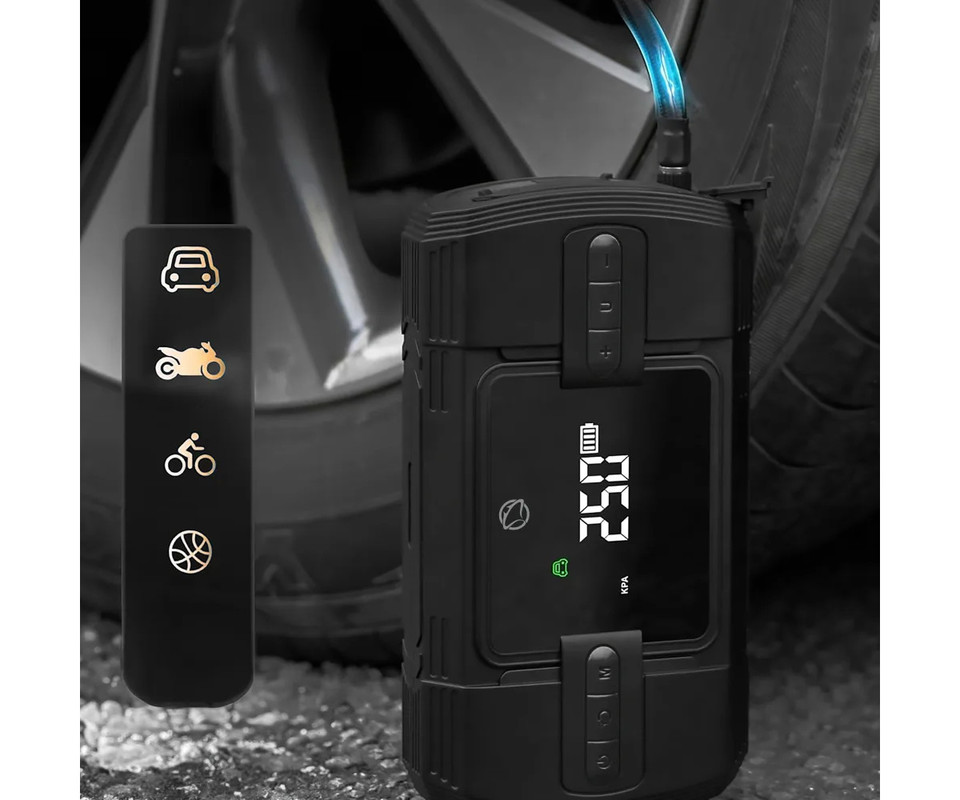 MANTA MAJS001AP 4V1 powerbank polnilna baterija, zagonska baterija / jump starter, brezžična zračna tlačilka / kompresor, LED luč, 12000mAh, 1200A, 150PSI/10.3bar, LCD zaslon, 12V adapter, USB Type-C
