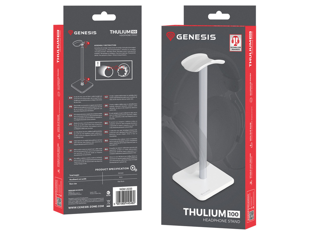 GENESIS THULIUM 100 stojalo za slušalke, protizdrsna podlaga, kovina, 245x100x100mm, belo (Howlite White)