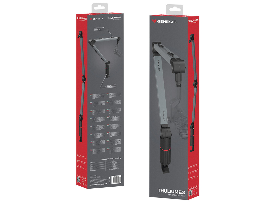 Odkrijte Thulium 700 – profesionalno držalo za mikrofon, zasnovano za najzahtevnejše uporabnike. Držalo Thulium 700, ki je združljivo z 99 % mikrofonov na trgu, je odgovor na naraščajoče potrebe igralcev, streamerjev in ustvarjalcev vsebin. Ponuja izjemno robustnost in stabilnost, njegova edinstvena zasnova pa omogoča delo z mikrofoni, ki tehtajo do 1 kg . Zahvaljujoč nastavljivi napenjalni sili in večjemu kotu zlaganja kot pri konkurenčnih modelih Thulium 700 omogoča priročno namestitev v širok razpon udobnih položajev na mizi.