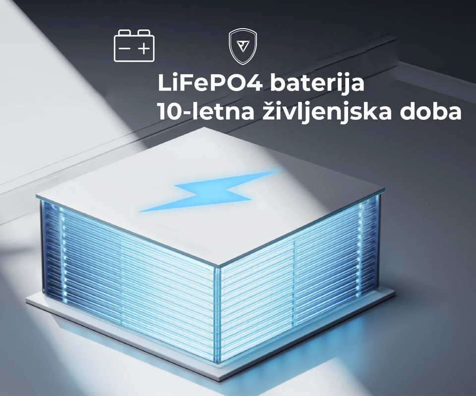 - Tip baterije: LiFePO₄ (litijev železov fosfat)