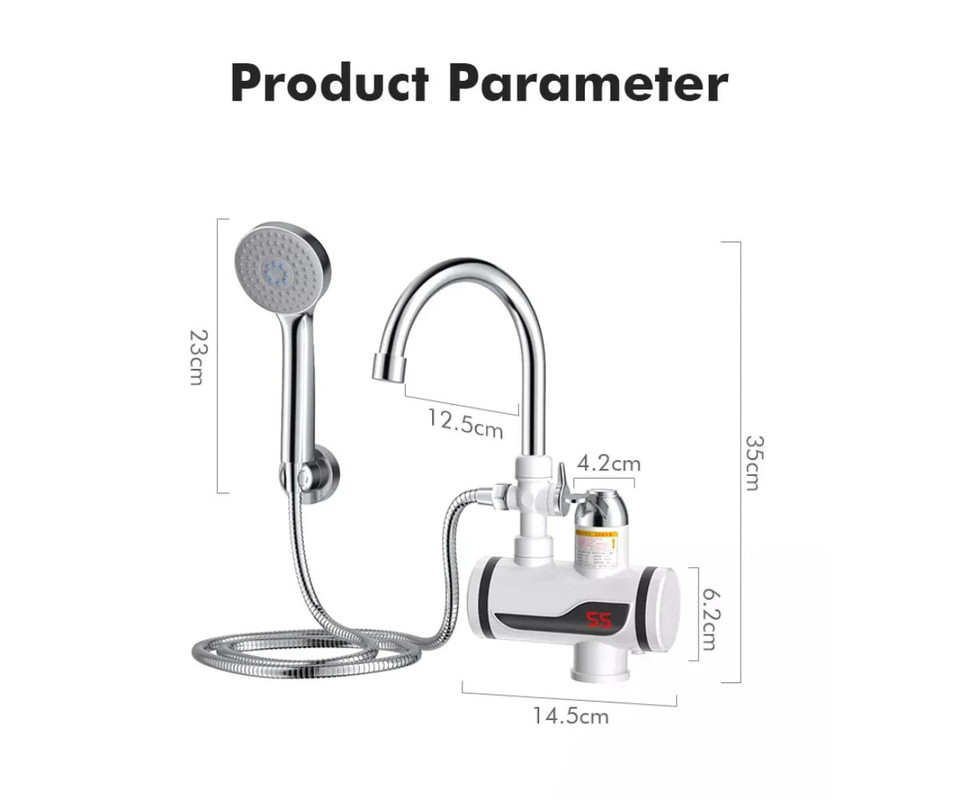 WELL RAINFALL električna grelna pipa / tuš ročna prha, 3600W, 360° vrtenje, 110cm kabel, LCD zaslon, IPX4 vodoodpornost, topla/vroča voda v nekaj sekundah, stenski priklop