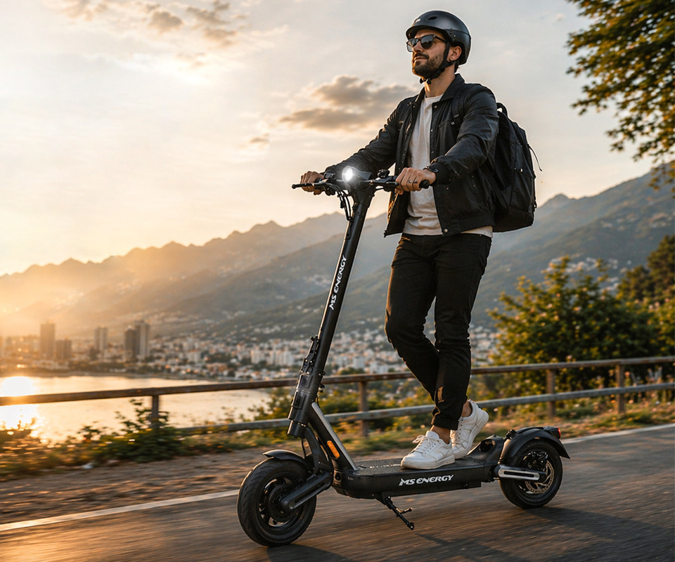 Predstavljamo najboljšo izbiro v svojem razredu - električni skiro MS Energy MENTOR 500 z vgrajenim 500W motorjem, ki ponuja odlične pospeške in udobno vožnjo. Raziščite prihodnost z najnovejšimi naprednimi funkcijami. Na novo definirajte svojo vožnjo s tehnologijo, ki se prilagaja vašim potrebam z inteligentnim sistemom Smart BMS, ki zagotavlja pameten in učinkovit sistem upravljanja z energijo.