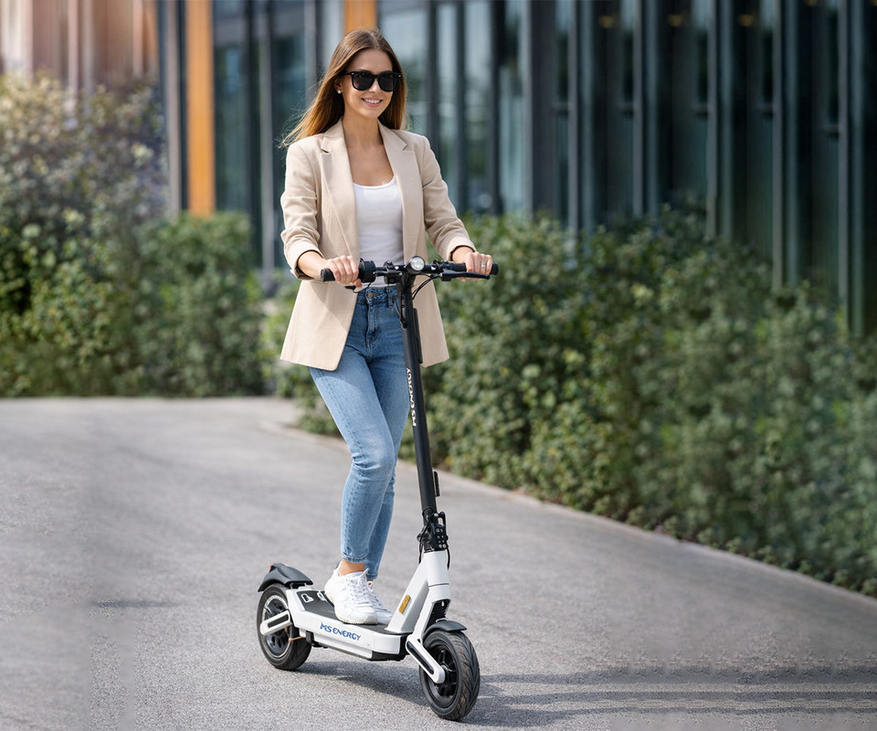 MS ENERGY MENTOR 500 električni skiro, 10" gume, 500W motor, 35km doseg, 374Wh 36V 10.4Ah baterija, dvojno C-vzmetenje, EBS sistem, Smart BMS, LCD zaslon, LED osvetlitev, aplikacija, črno bel
