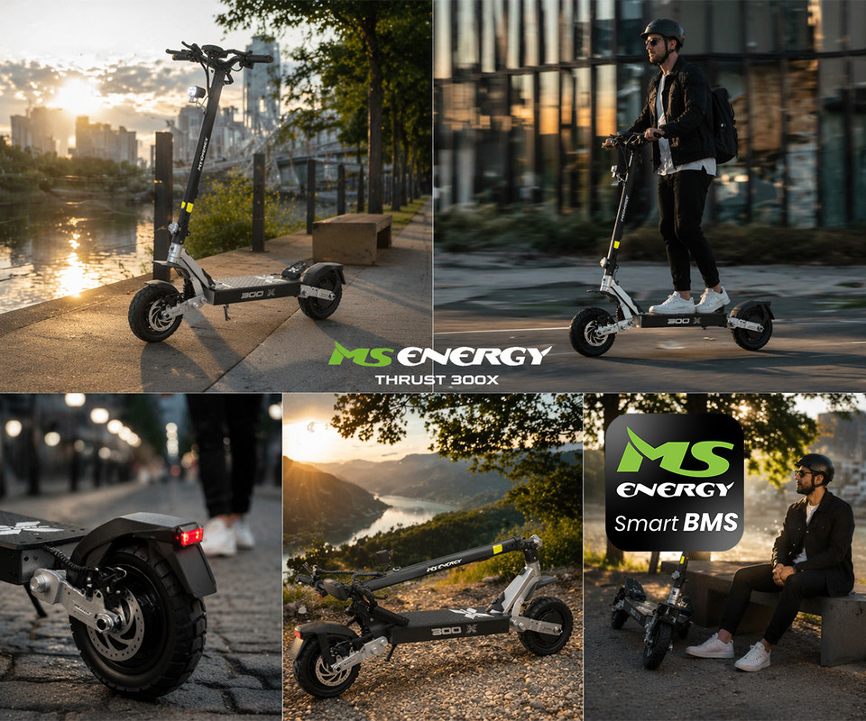 Predstavljamo visoko zmogljiv električni skiro MS Energy THRUST 300X z vgrajenima 2x 300W motorjema, ki zagotavljata izjemno moč navora. Raziščite prihodnost z najnovejšimi naprednimi funkcijami, ki zagotavljajo odlične rešitve za vsak slog vožnje po vseh terenih. Na novo definirajte svojo vožnjo s tehnologijo, ki se prilagaja vašim potrebam z inteligentnim sistemom Smart BMS, ki zagotavlja pameten in učinkovit sistem upravljanja z energijo.