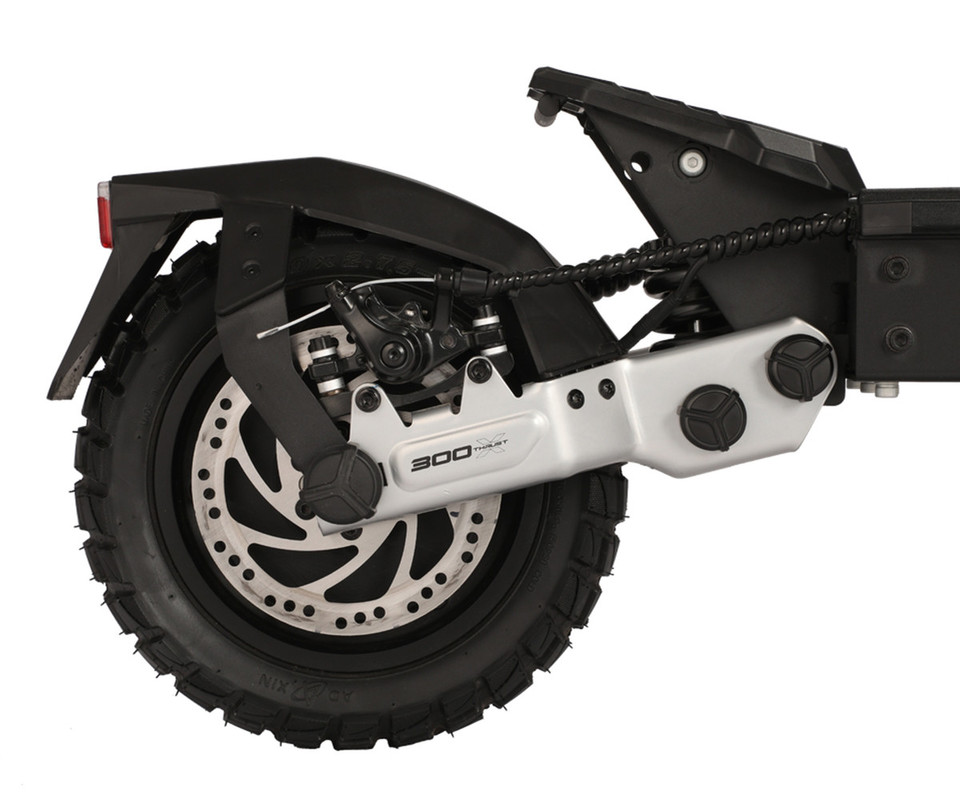 Zahvaljujoč 2x 300W motorju (2x 1100W PEAK), velikim 10-palčnim pnevmatikam, ter trpežnemu dvojnemu C-vzmetenju spredaj in zadaj, boste lahko vedno občutili varnost in adrenalin, kjerkoli se boste vozil!