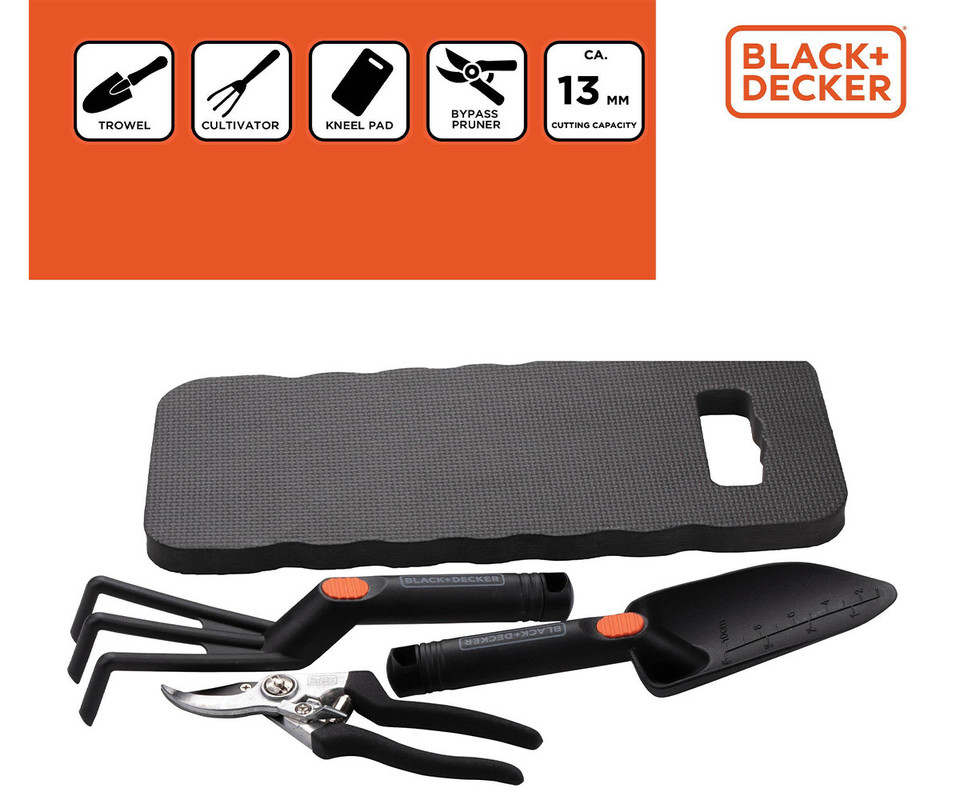 Praktičen komplet vrtnih orodij BLACK+DECKER