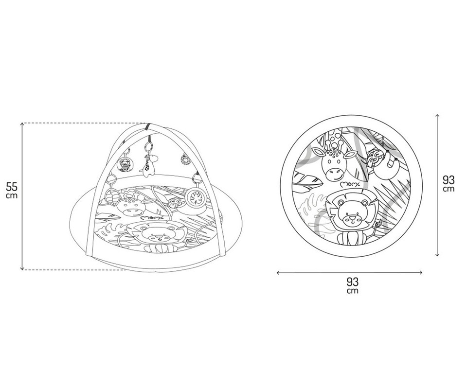 Podloga ima premer 93 cm (72 cm brez roba), kar ponuja popoln prostor za varno in udobno igro vašega otroka.