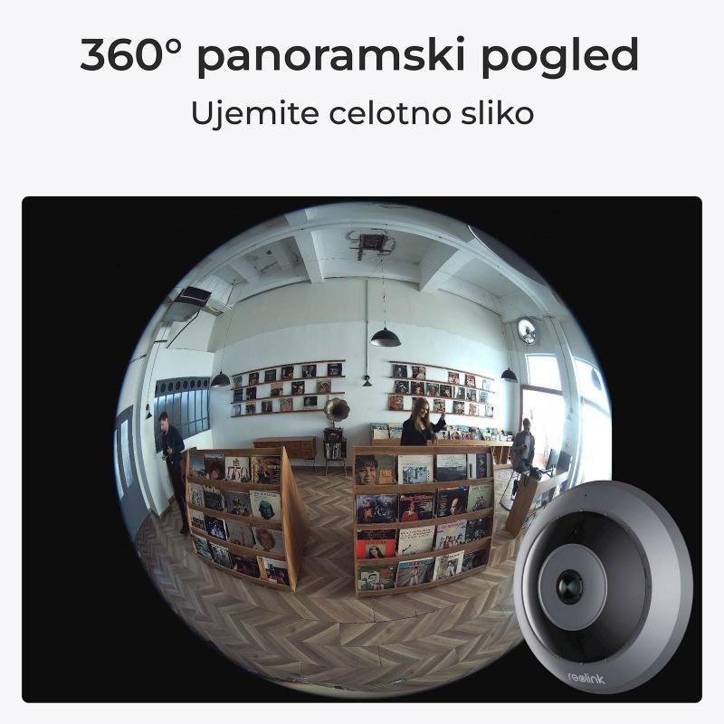 Reolink FISHEYE P520 IP kamera, 6.5MP 2K+ Super HD, POE, 360° objektiv, AI zaznavanje, Night Vision, aplikacija, dvosmerna komunikacija, pametni alarm, siva