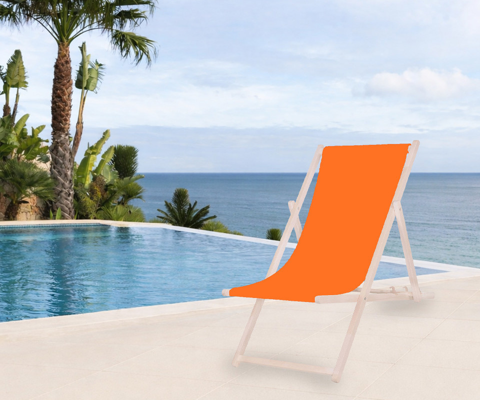 PLATINET PSW leseni ležalnik, MADE in EU, 3 stopnje nastavitve, zložljiva oblika, ultra lahka teža, zaščita pred nenamernim zlaganjem, bukov les, UV & vodoodporna tkanina, oranžen