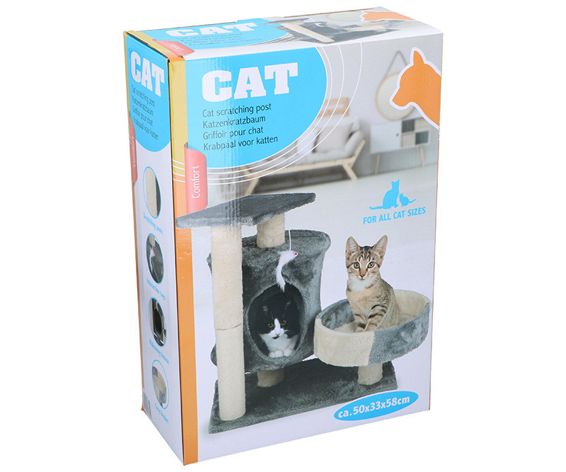 Ta model združuje trpežne materiale, ki so primerni za vsakodnevno praskanje in igro, z stabilno konstrukcijo, ki preprečuje zanašanje ali prevrnitev med uporabo.