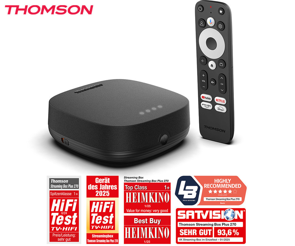 Pametna zabava – poenostavljena! Thomson Box Plus 270 prinaša popolno izkušnjo Google TV na kateri koli televizor s priključkom HDMI. Kompakten, prenosen in enostaven za namestitev - popolna rešitev za pretvorbo katerega koli zaslona v popolnoma povezano medijsko središče – ​​doma ali na poti.