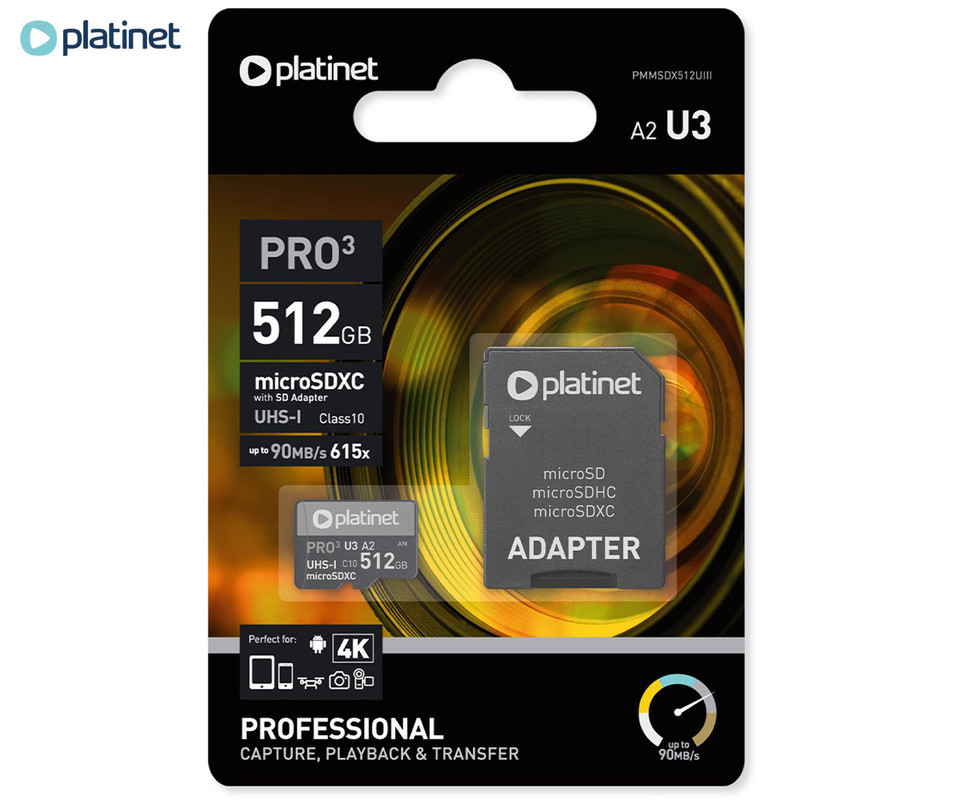 PLATINET PMMSDX512UIII microSD kartica, 512GB, 90MB/s, class10, UHS-I, +adapter
