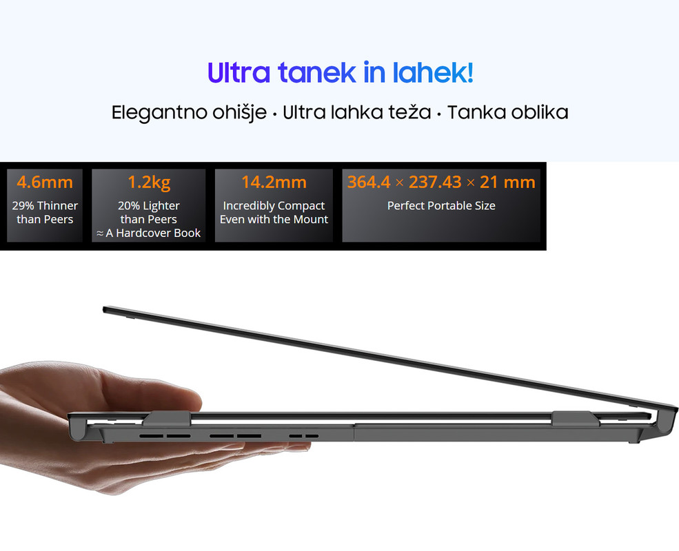 - Ultra tanek in lahek - samo 4,6 mm in 1,2 kg